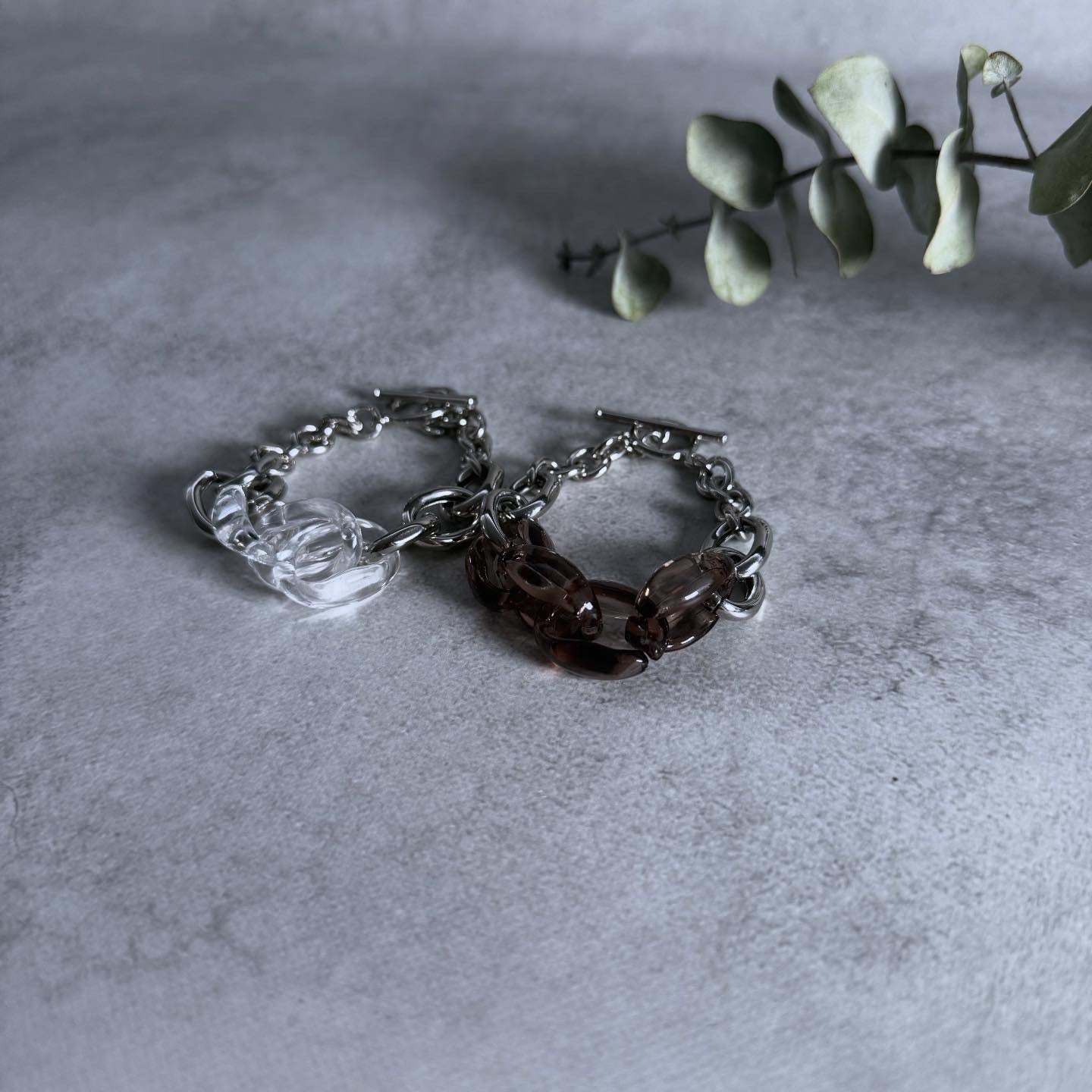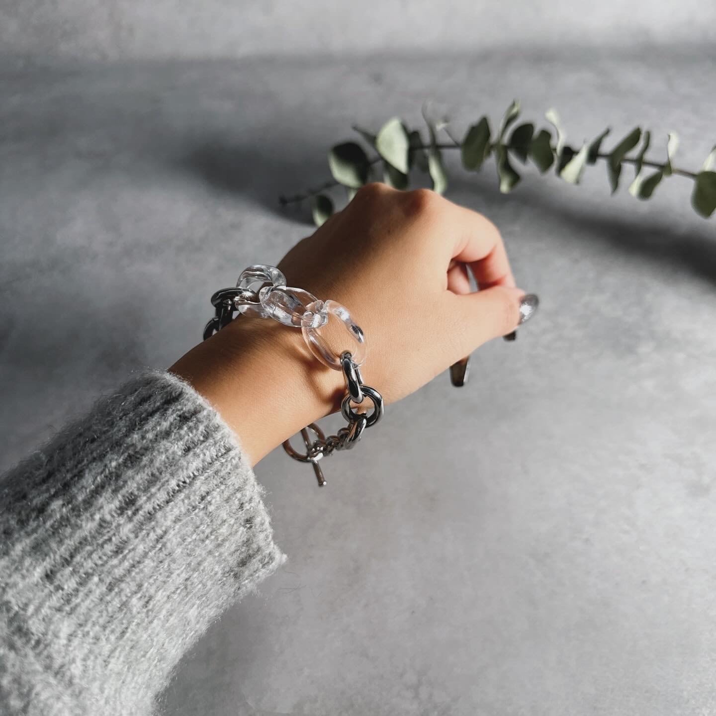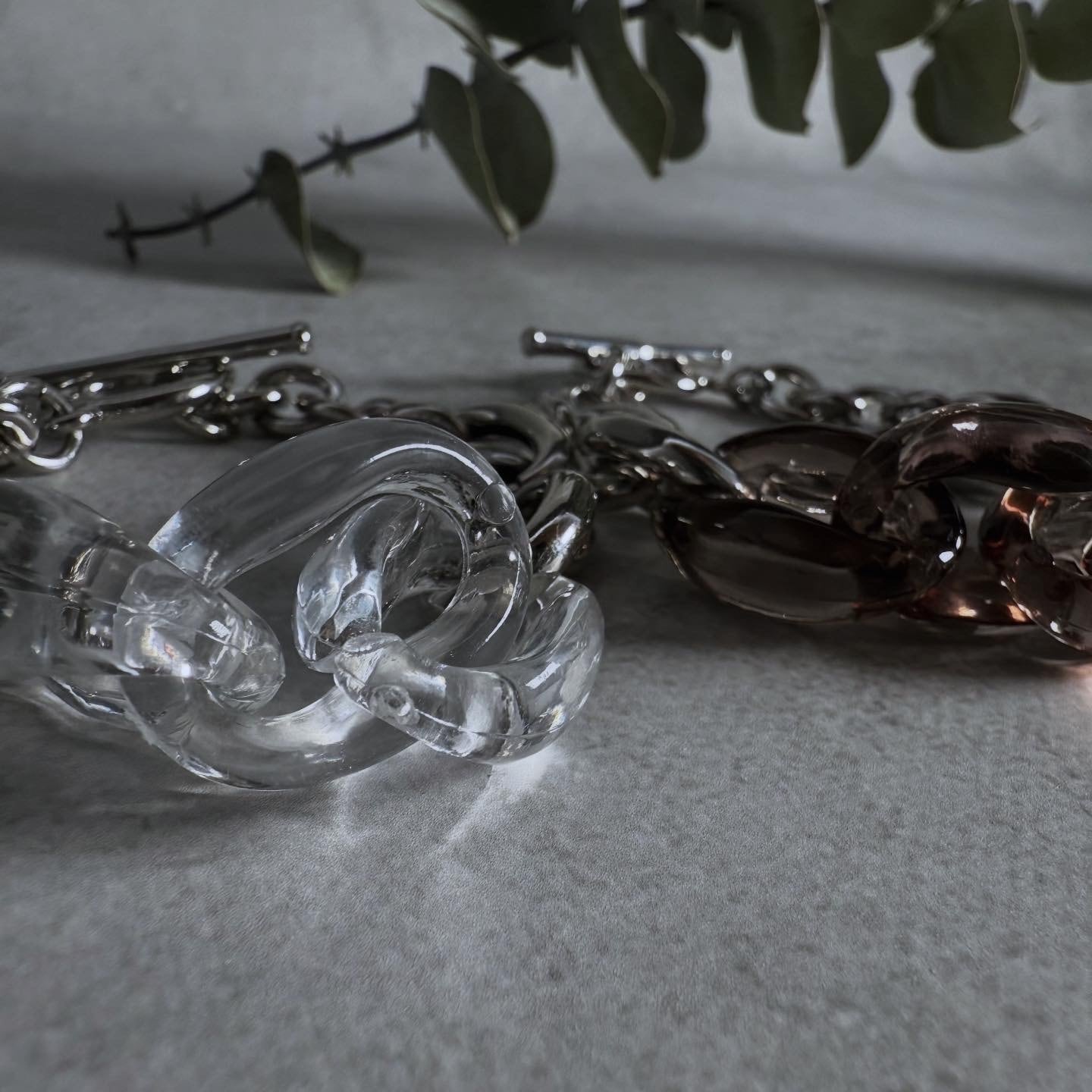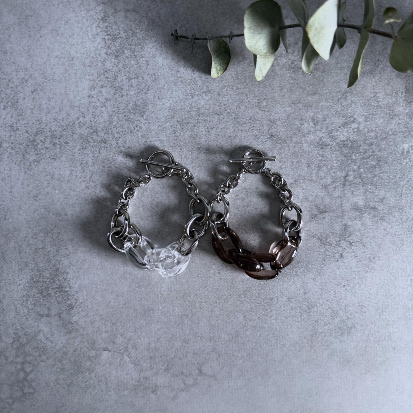 アクリル素材のチェーンが目を惹くブレス。