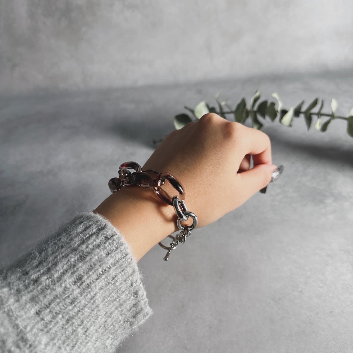 少しボリュームのあるチェーンが腕を華奢に見せてくれます。