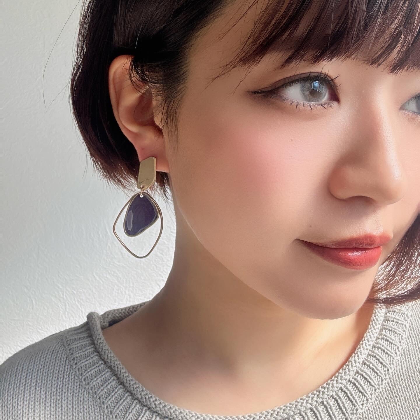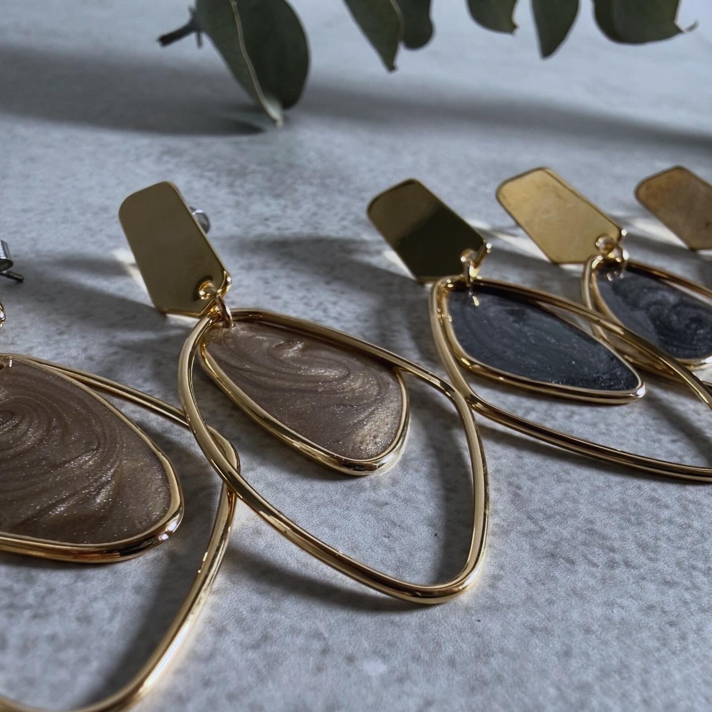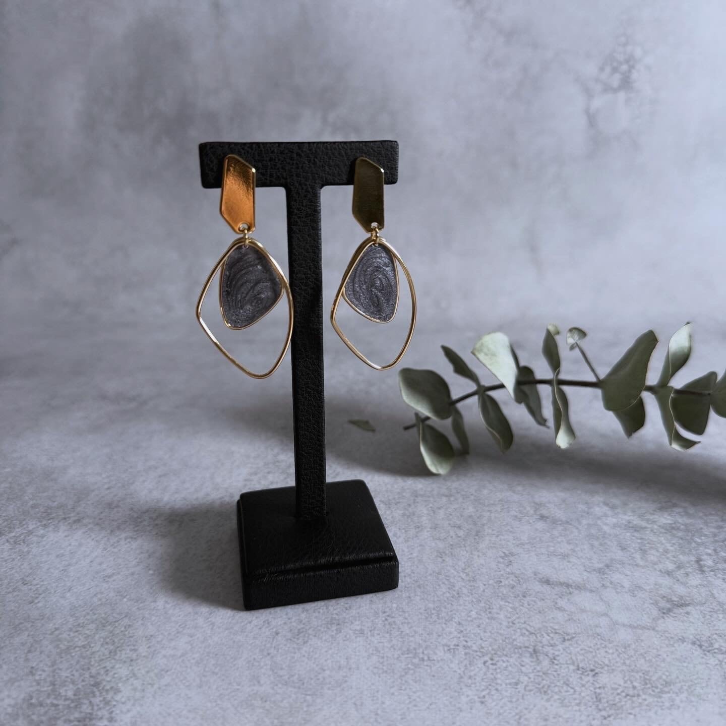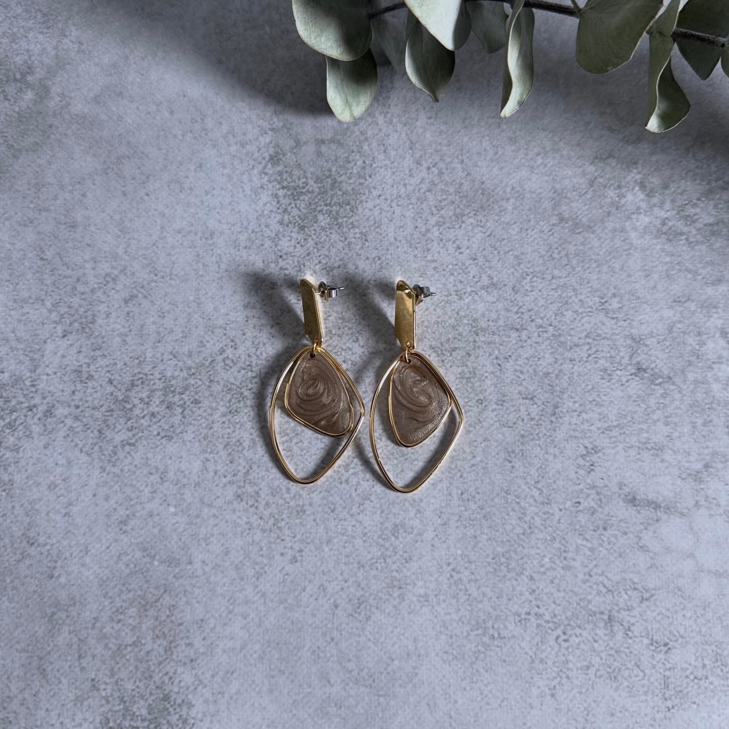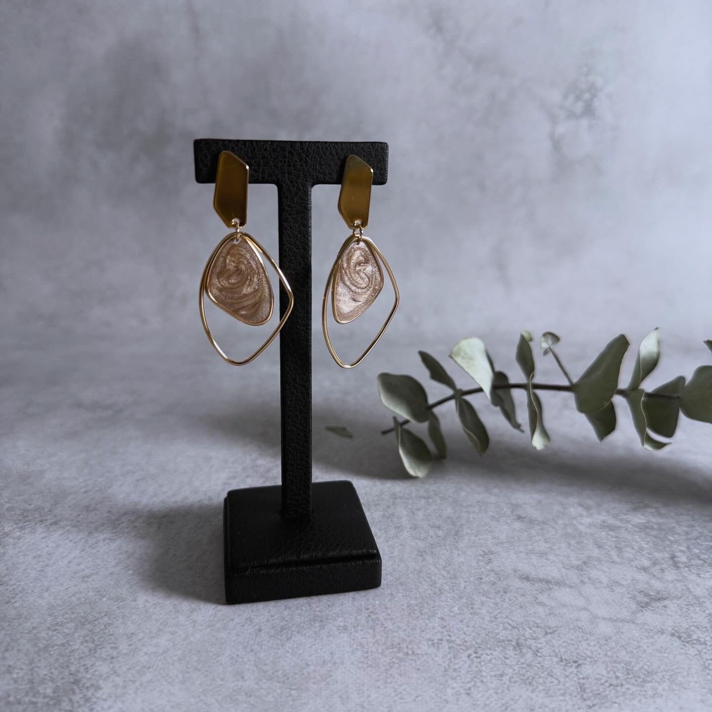 マーブル柄のモチーフが目を惹くピアス。