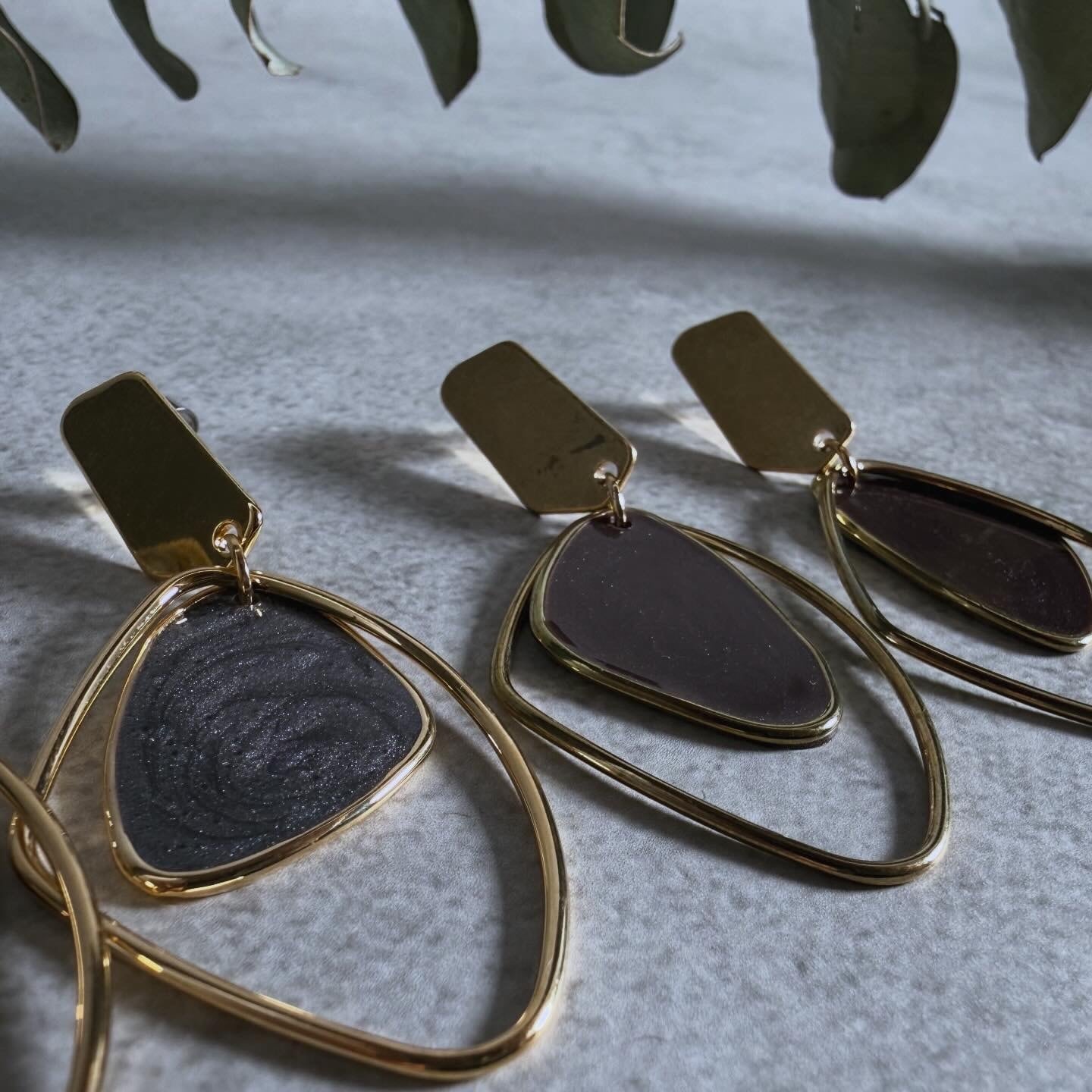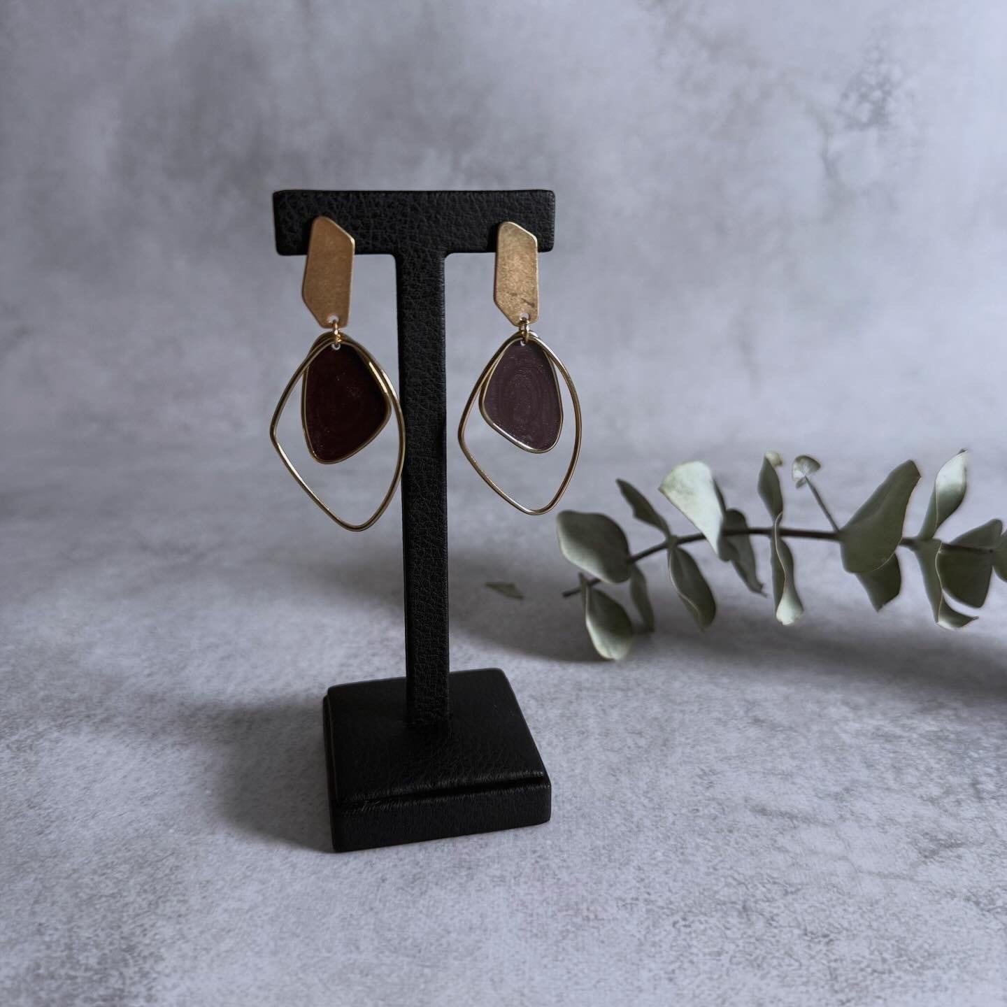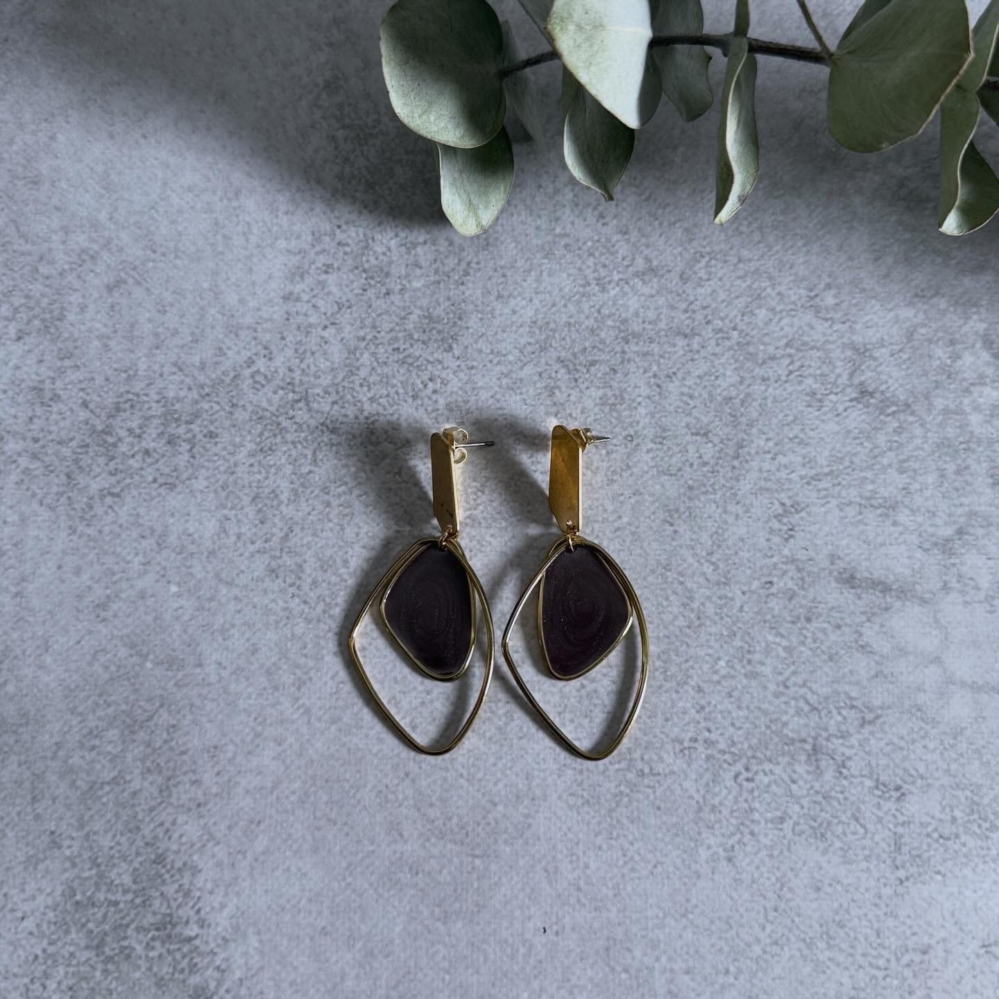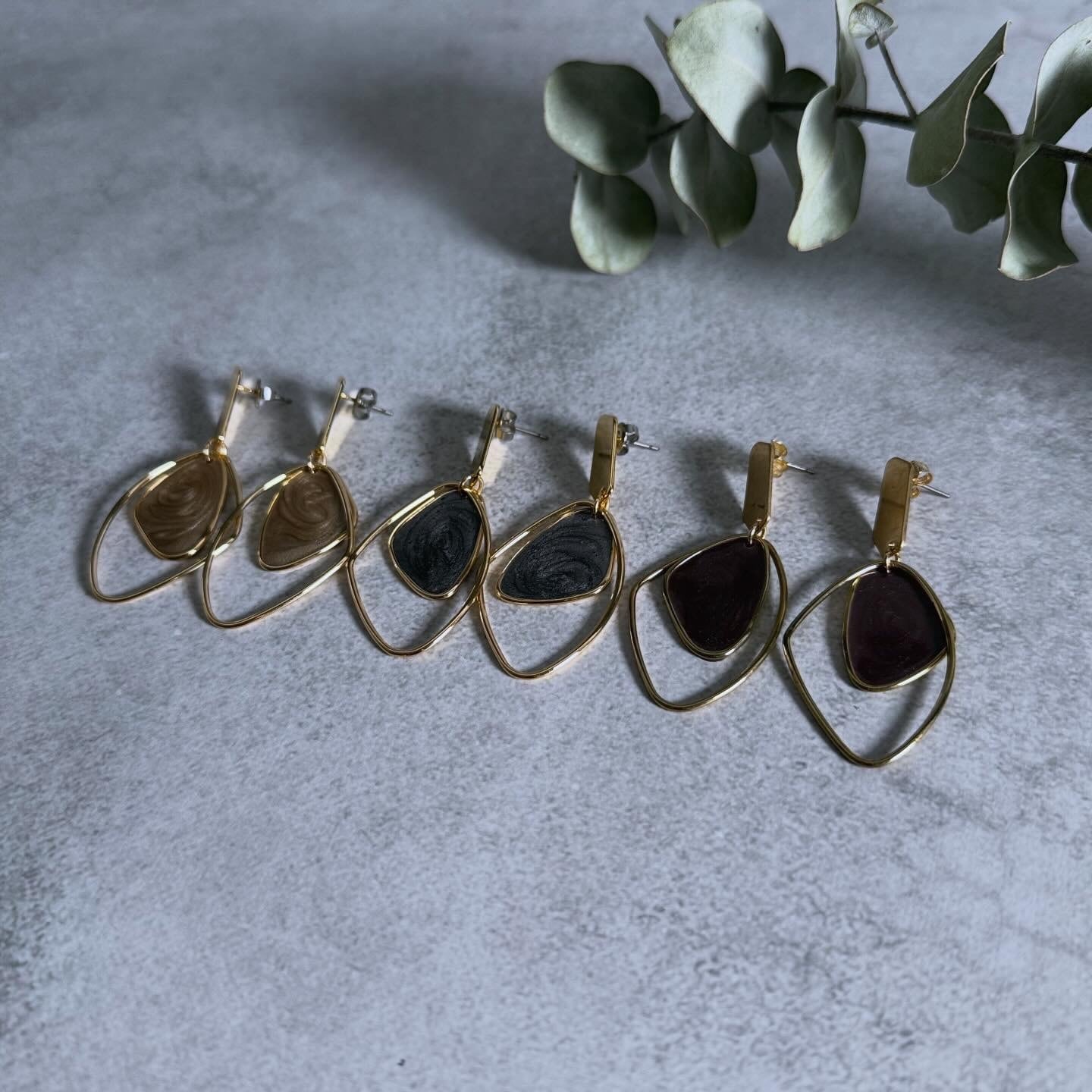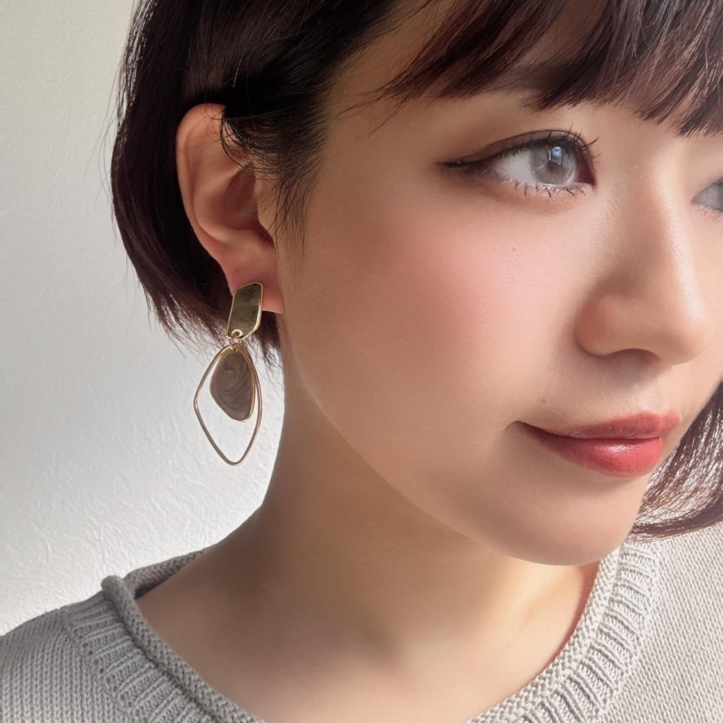 マーブル柄のモチーフが目を惹くピアス。